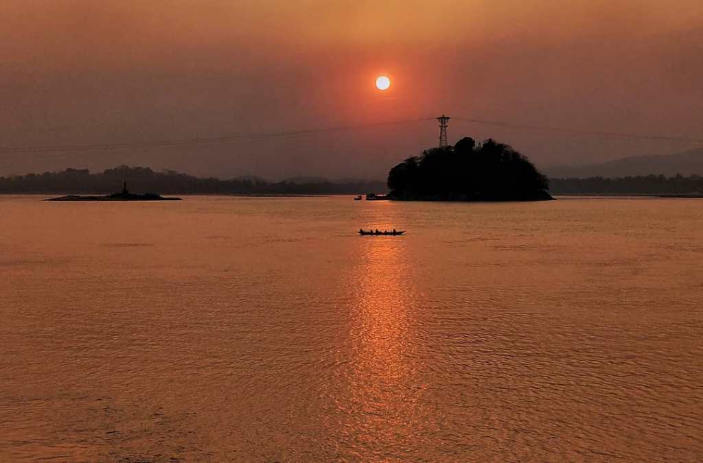 We had planned to fly to Bagdogra and then take a short drive to Jaigaon. However, our flight was cancelled and we were rescheduled on a flight to Guwahati. So, we had to replan the entire trip. We landed in Guwahati around noon. Spent the entire day exploring the food scene and bazaars of Guwahati. We also took a sunset cruise on the Brahmaputra. We boarded the Alfresco Grand boat near Uzan Bazaar. A decent sunset ride, with food and drinks, it was a good start to the trip.